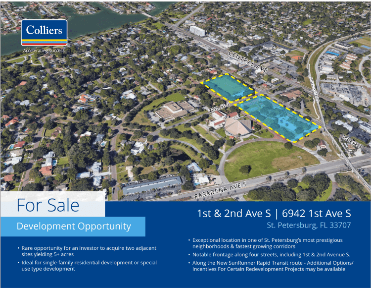 The Collier/Coldwell Banker team is currently researching what advantages the City of St. Petersburg may give to the property which is located so close to the new SunRunner transit system that the city is aggressively promoting.